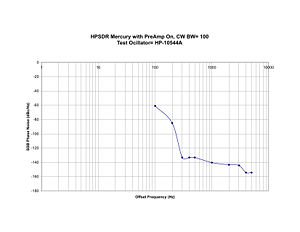 The ARRL handbook instructions (Page 25.43 of the 2009 handbook) says to use a weak signal at about a level of 110 dBm and a strong signal 20 KHz offset. The ARRL Lab procedures requires the weak signal level to be about 10 dB below where we detect the 1 dB of gain compression of the weak signal. On Mercury no detectable gain compression was measured on any level of weak signal with any level of strong signal below the A/D overload values at 4, 14, and 30 MHz with the PreAmp on or off.