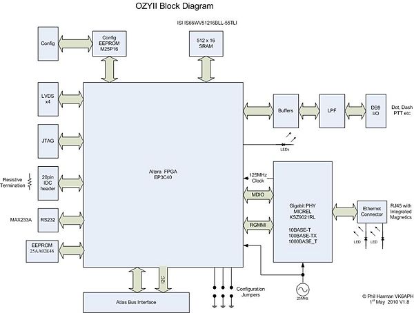 OzyII (or maybe Aussie II?) will be a high speed PC interface. Whilst the original Ozy board has served us well to date, in order to implement some of the future HPSDR projects we are going to need a faster interface between the various boards on the Atlas bus and the PC.