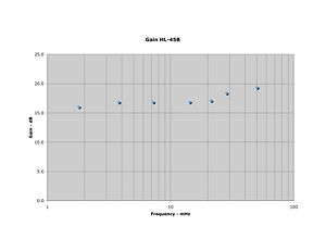 Figure #1. N6AS measured gain of the HL-45B HF/6 Meter Amplifier