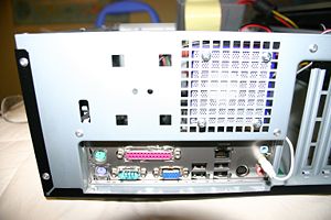 From experience building several HPSDR transceivers in this case, we have found that all is needed is a small footprint Mini IPX motherboard. No extra I/O cards are required if one uses virtual software ports. By using SATA drive ports exclusively we can use such a small motherboard. An Intel DQ45EK Desktop Board was ordered for this project, but a better lower cost solution is to use the new Intel D945GCLF2D board with a Dual-Core Intel Atom Processor and Integrated Graphics. A test of running PowerSDR on this processor resulted a CPU usage of less than 30%!