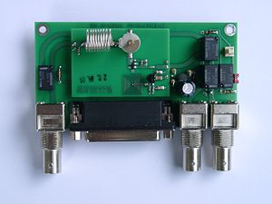 The Antenna Switch, made by NT Electronics, is designed to switch an antenna to the Mercury antenna BNC connector or to the Penelope BNC antenna connector. This function is included in the Alex filter board assembly, but for various reasons, many in the HPSDR community will opt to purchase a commercial amplifier that will operate with an input of up to 500 mw. Tokyo Hy-Power Labs makes compatible solid state amplifiers and some hams are using them with the HPSDR transceiver components developed and produced to date..